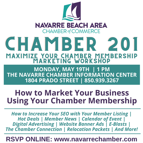 Unlock the Full Power of Your MembershipThe Navarre Beach Area Chamber of Commerce is excited to announce Chamber 201: How to Market Your Business Using Your Chamber Membership, a hands-on marketing workshop exclusively for Navarre Chamber Members.